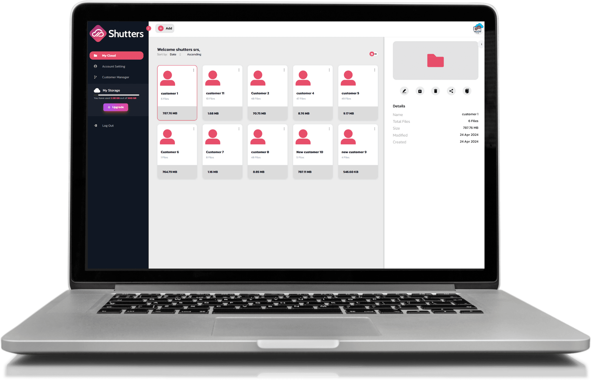 With advanced encryption and secure access controls, Shutters ensures that your files are always safe from unauthorized access and accidental loss. Your data is protected with the highest security standards, giving you peace of mind.